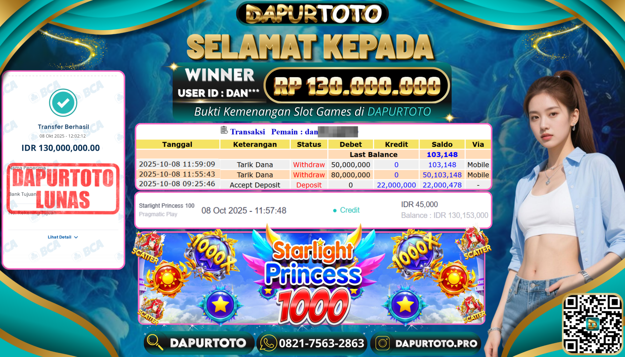 BUKTI JACKPOT SLOT GAME 8 Oktober 2025 Posted by team logic STARLIGHT PRINCESS 1000 RABU ,08 OKTOBER 2025 RP. 130.000.000,- SELAMAT KEPADA PEMENANG, SALAM JP ! Updated: 8 Oktober 2025 at 8:47 pm ◀ BUKTI JACKPOT SLOT GAME BUKTI JACKPOT SLOT GAME ▶