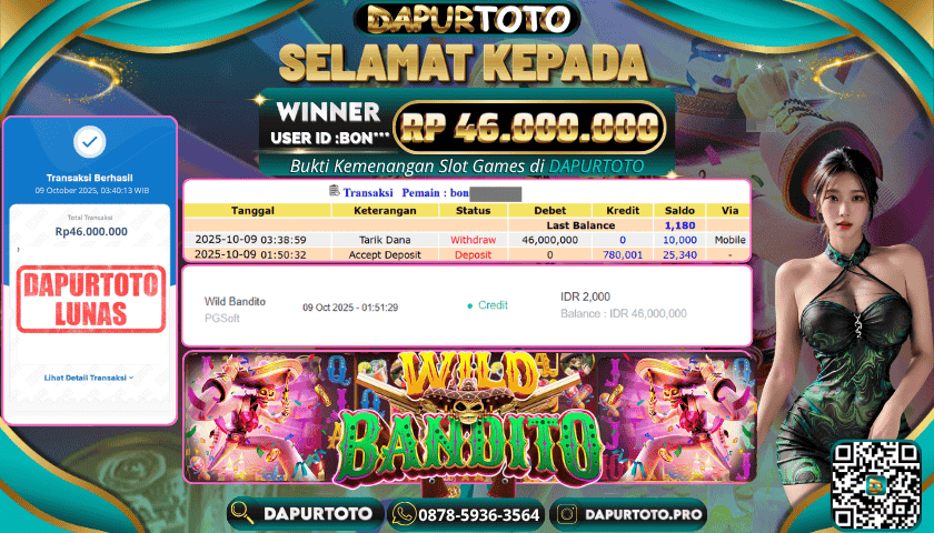 BUKTI JACKPOT SLOT GAME 9 Oktober 2025 Posted by team logic WILD BANDITO KAMIS ,09 OKTOBER 2025 RP. 46.000.000,- SELAMAT KEPADA PEMENANG, SALAM JP ! Updated: 9 Oktober 2025 at 4:10 am ◀ BUKTI JACKPOT SLOT GAME BUKTI JACKPOT SLOT GAME ▶