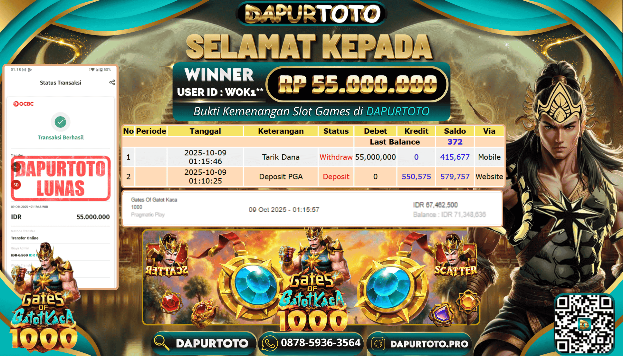 BUKTI JACKPOT SLOT GAME 9 Oktober 2025 Posted by team logic GATES OF GATOT KACA 1000 KAMIS ,09 OKTOBER 2025 RP. 55.000.000,- SELAMAT KEPADA PEMENANG, SALAM JP ! Updated: 9 Oktober 2025 at 6:42 am ◀ BUKTI JACKPOT SLOT GAME BUKTI JACKPOT SLOT GAME ▶