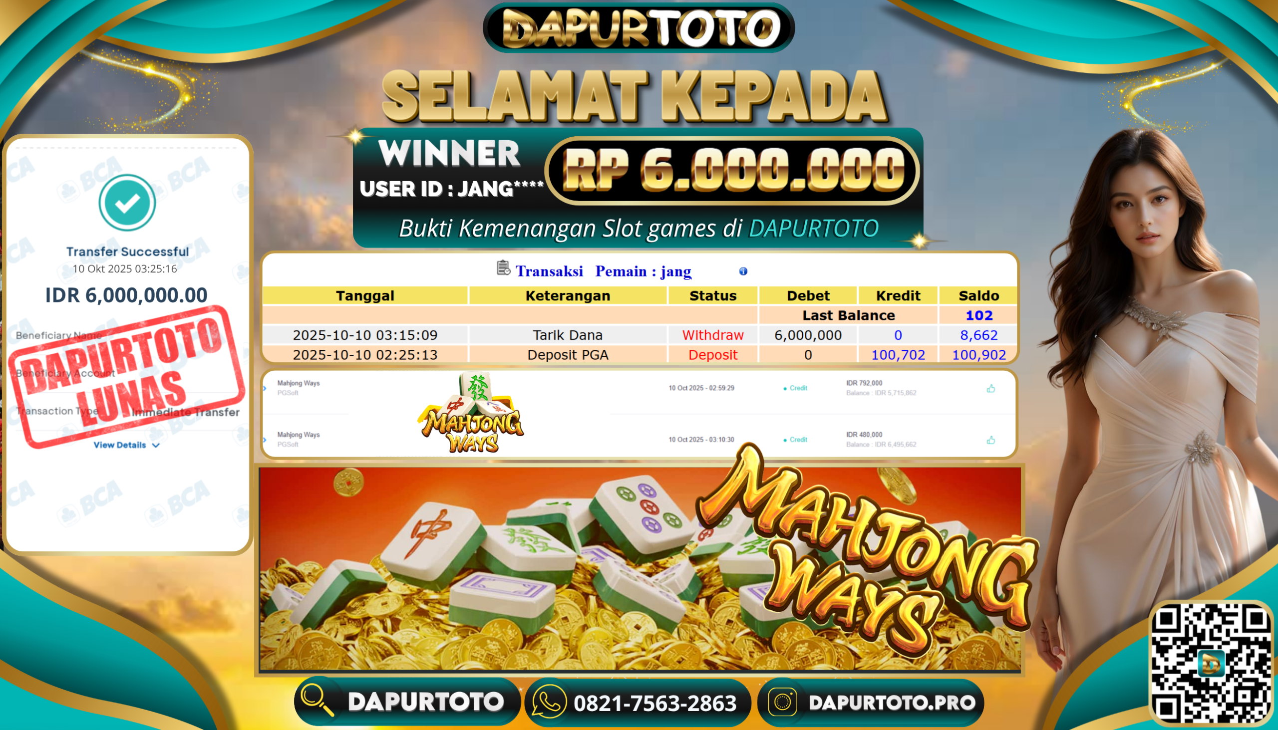 BUKTI JACKPOT SLOT GAME 10 Oktober 2025 Posted by team logic MAHJONG WAYS JUM’AT ,10 OKTOBER 2025 RP. 6.000.000,- SELAMAT KEPADA PEMENANG, SALAM JP ! Updated: 10 Oktober 2025 at 5:13 am ◀ BUKTI JACKPOT SLOT GAME BUKTI JACKPOT SLOT GAME ▶