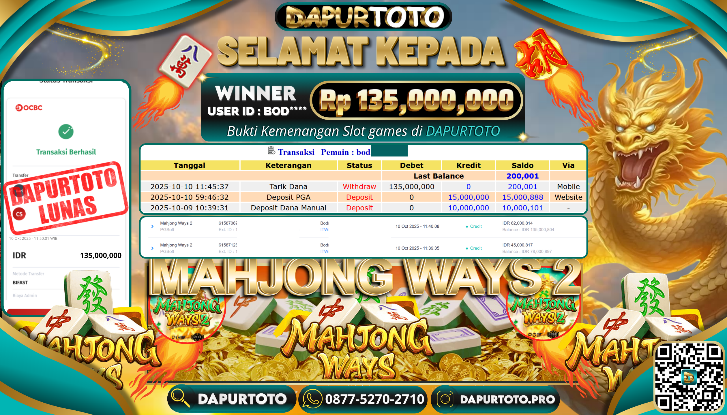 BUKTI JACKPOT SLOT GAME 10 Oktober 2025 Posted by team logic MAHJONG WAYS 2 JUM’AT ,10 OKTOBER 2025 RP. 135.000.000,- SELAMAT KEPADA PEMENANG, SALAM JP ! Updated: 10 Oktober 2025 at 4:45 pm ◀ BUKTI JACKPOT SLOT GAME BUKTI JACKPOT SLOT GAME ▶
