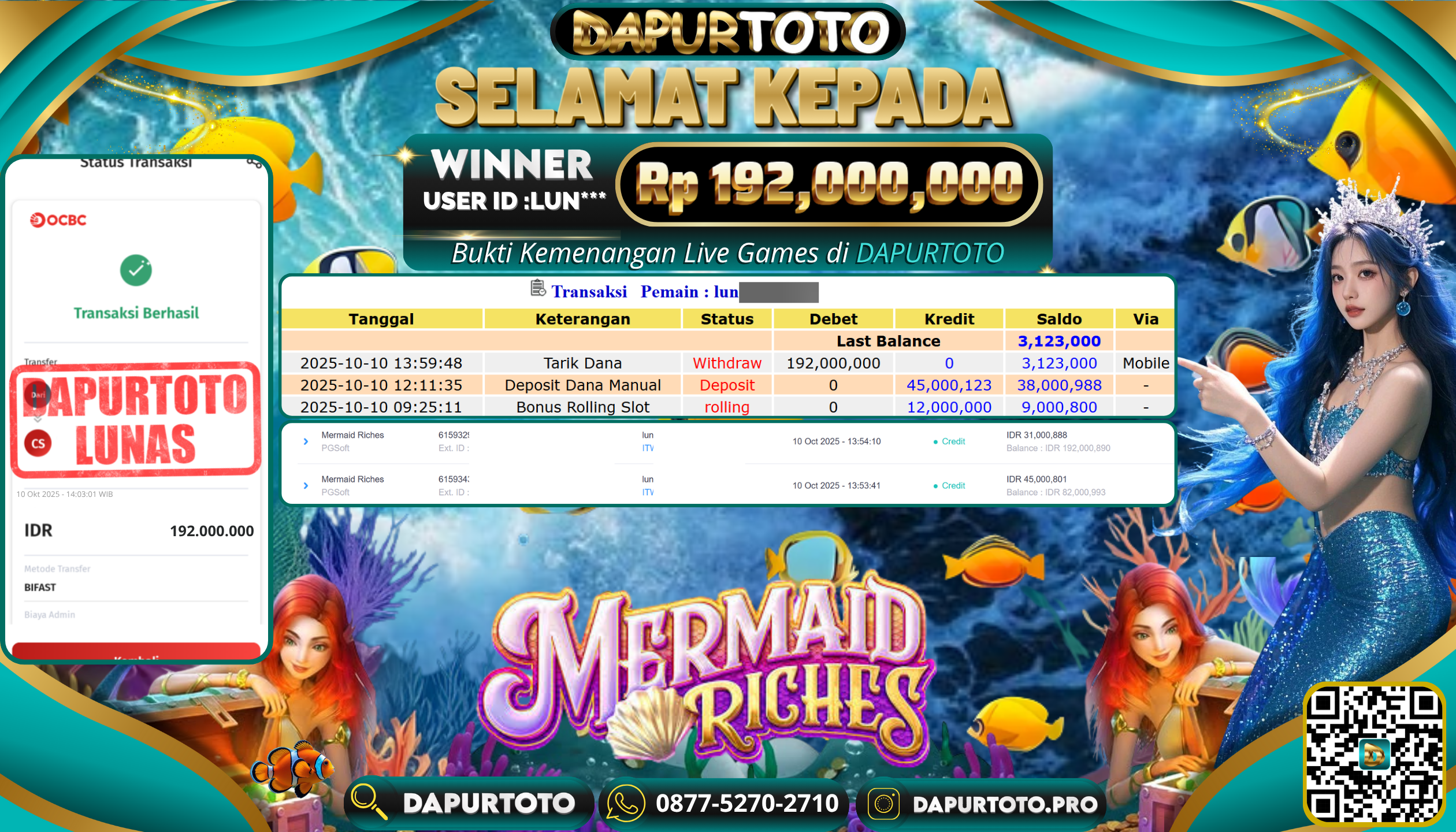BUKTI JACKPOT SLOT GAME 10 Oktober 2025 Posted by team logic MERMAID RICHES JUM’AT ,10 OKTOBER 2025 RP. 192.000.000,- SELAMAT KEPADA PEMENANG, SALAM JP ! Updated: 10 Oktober 2025 at 4:54 pm ◀ BUKTI JACKPOT SLOT GAME BUKTI JACKPOT SLOT GAME ▶
