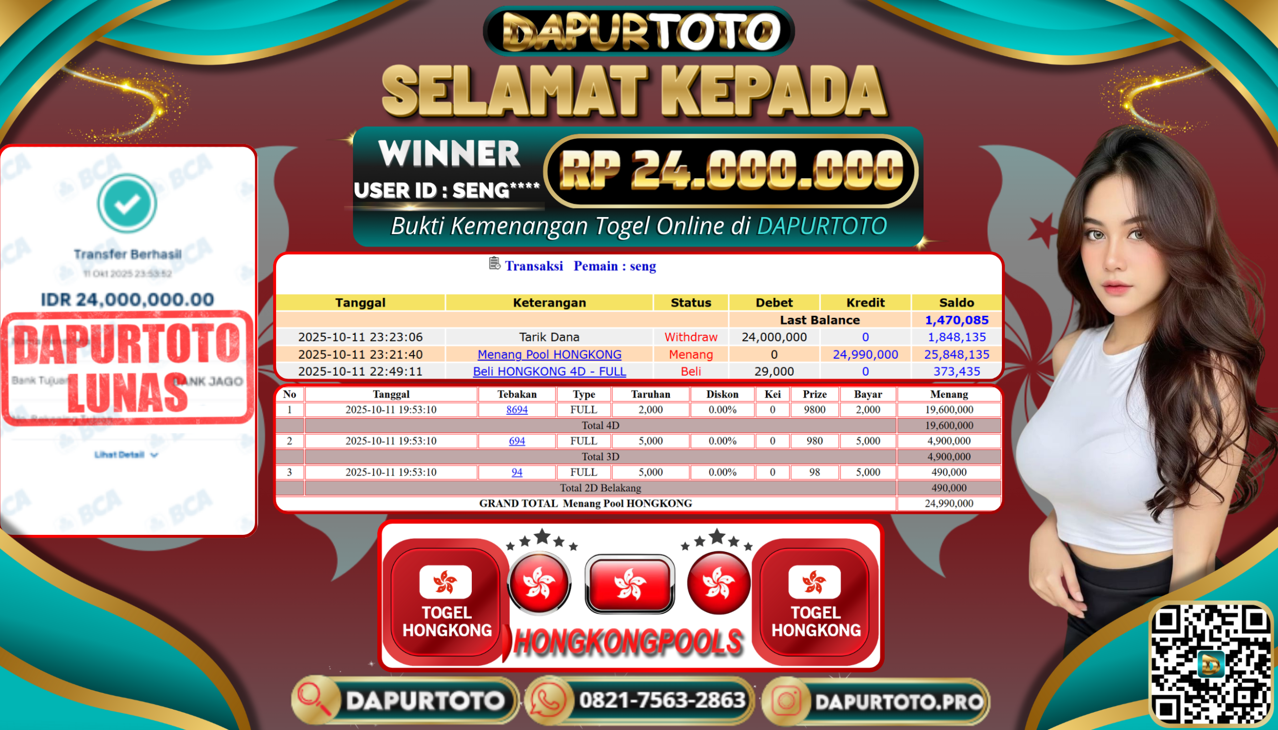 BUKTI JACKPOT TOGEL ONLINE 12 Oktober 2025 Posted by team logic HONGKONG SABTU ,11 OKTOBER 2025 RP. 24.000.000,- SELAMAT KEPADA PEMENANG, SALAM JP ! Updated: 12 Oktober 2025 at 4:04 am ◀ PREDIKSI TOGEL TOTO MACAU BUKTI JACKPOT LIVE GAMES ▶